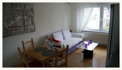Auf dieser Seite möchten wir Ihnen unsere neu gestaltete komfortable Ferienwohnung "Riesling" vorstellen, die im Wohnbereich mit Holzfußböden ausgestattet ist. Auf 40 m2 Wohnfläche finden Sie einen großen Wohn- und Essbereich mit ausziehbarem Schlafsofa (zusätzliche Schlafplätze) und einen Couchtisch.