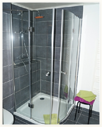 Grosse komfortable Dusche mit Echtglas.